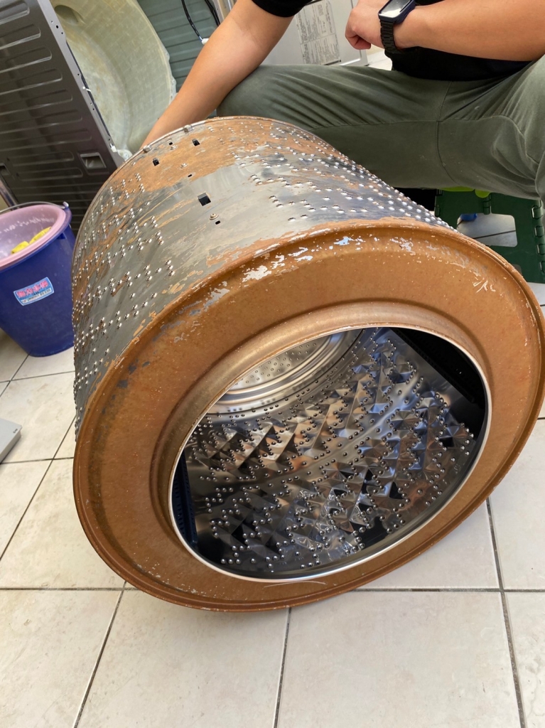 > 【台中滾筒式洗衣機清洗】國際牌滾筒後拆式滾筒